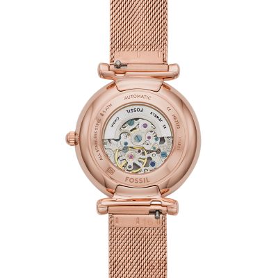 Carlie Automatic Rose Gold Tone Stainless Steel Mesh Watch Me3175 Fossil